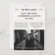 Lägg märke till din stora dag med charm och stil med hjälp av den här moderna tidningen spara-date. Med en klassisk svartvit design och din romantiska gatufotofront och -center är det perfekt för par som inte har någon tidsinställning i kärlek med en modern twist. Det är också budgetvänligt och enkelt att digitalt.