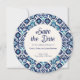 Spara datumkortet för den blå Medelhavsbrickan i e Spara Datumet