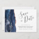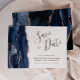 Den här eleganten är modern när du sparar datumkortet med en marinblå vattenfärgsagat gräns som trimmas med faux ro guld glitter. Anpassadet kombinerar handskriftsskript, mönsterplåt och kursivt typsnitt i grått i kol mot vit bakgrund. Den omvända sidan har en matchande marin blå utformning och ro guld-agatdesign.