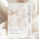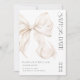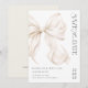 Elegant Ivory Bow Spara datumkortsmeddelandet speciell dag i stil med det här sofistikerade "Spara datum"-kortet med ett vackert illustrerat elfenbensmatarbun. Utformningen kombinerar en tidlös palett i neutralt färg med modern typografi, vilket skapar en lyxig och romantisk känsla.