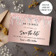 En elegant Spara datumkortet i en 40:e (eller någon annan ålder) födelsedagsfest. En guld-övertoningsbakgrund i ro som dekoreras med ro guld och faux glitter droppar i silver, färgdroppstift. Anpassa och lägg till datum och namn/ålder 40. Texten: Spara datumet skrivs med ett stort trendig-handskript i stil.