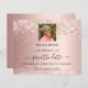 Spara datumkortet glamoröst i 50:e (eller i vilken ålder som helst) födelsedagsfest. En övertoningsbakgrund för ro guld. Dekorerad med konetti. Texten: Spara datumet skrivs med ett stort trendig-handskript i stil. Anpassa och lägg till ett foto. 1 lakan = 1 spara datumet som skrivs ut kant till kant.