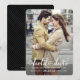 Ett foto med fullt-utfall sparar datumkortet med vit text.