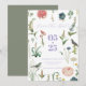 Ställ in tonen för ditt romantiska trädgårdsbröllop med det här vismatiska spara datumkortet, med handmålade vilda blommor i mjuk lavender och sage grönt. Med en modern serverdatumlayout får du en aning elegans i blommigtens utformning. Anpassa med dina namn- och bröllop-detaljer för ett vackert minnesvärt första intryck.