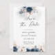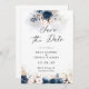 Tunga Blue och Dusty Ro sparar datumkortet. Den här snyggten och eleganten Inbjudningskort för möhippan har en strålande, handmålad vattenfärgsfärg, marinblått och dammaktigt Ro-Blommigt. Sök efter matchande objekt i Blommigten Navy Blue och Dusty Ro.