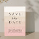 Summery och strand-perfekt med en förfinad elegant-stil, vår Rosa Sand bröllop spara datum-kort har gradient ombre-band av korall rosa och sandbeige vattenfärg, med "spara datumet" och dina bröllop-detaljer visas i kontrasterande plommontext för choklad. Ett val av chic för bredvid bröllop inspirerades av Bermudas rosa sandstränder.