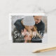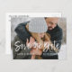 Skriptet Spara datumfotokortet med hjälp av Winter Charcol Grått Hand. Bilden och texten i det här handskrivna penselskriptet kan uppdateras och anpassas med fotot och namn. Det här kortet visningar även ditt namn på baksidan av Spara datumkortet.