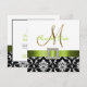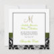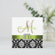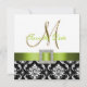 Den sofistikerade elegansen förmedlas av den här vackra bröllop spara datum-kortsdesignen i kvadratiskt format. Ett fläckmönster för svart och vit blommigt fungerar som bakgrund för en fotoeffekt av Metallic Guld Initial M och ett band för grönt och diamantbrok ALL tryckt på ett FLAT-kort Spara meddelandet från Bröllop. Ett perfekt sätt att informera dina gäster om ditt kommande bröllop. Contemporary, men klassiskt dammmönster med en design som gör att du kan anpassa framsidan med namn och baksidan kan lägga till din anpassade datumtext. Utformningen är inställd för inledande monogram "M". För annat brev, annat menyfliksområde färg och annan bakgrund kontaktar du designern på luxuryweddinginvitations@gmail.com. Layoututkast av Elke Clarke©. Grafik licensierad. Välj bland en mängd typsnitt och vackert för att göra din bröllopsinbjudning till PERFEKT!
