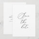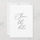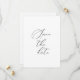 Spara det platta datumkortet formellt. Svart typografi på vit bakgrund med detaljer på baksidan. Kimberly Brett.