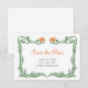 Denna inbjudan från elegant bröllop inspirerades av Art nouveau-rörelsens skönhet. En gräns av grönt och tulpaner i ramar.