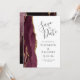 Den här eleganten är modern när du sparar datumkortet och har en burgundisk vattenfärg som agerar geode gräns som trimmas med faux guld glitter. Anpassadet är grått av kol mot vit bakgrund. Den bakomliggande sidan har en matchande burgundi och guld-agate-design.
