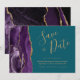Den här eleganten är modern när du sparar datumkortet och har en lila vattenfärg som går upp i gräns och trimmas med faux guld glitter. Anpassadet kombinerar handskriftsskript guld-färgad, tryckplåt och kursivt typsnitt på en helblå bakgrund. Den omvända sidan har en matchande lila- och guld-agate-design.