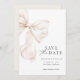 Elegant Ivory Bow Spara datumkortsmeddelandet speciell dag i stil med det här sofistikerade "Spara datum"-kortet med ett vackert illustrerat elfenbensmatarbun. Utformningen kombinerar en tidlös palett i neutralt färg med modern typografi, vilket skapar en lyxig och romantisk känsla.