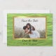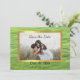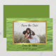 Vietnamesisk Grönt och White Photo Save the Date med lavender banner och grönt hjärta,