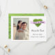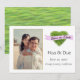 Vietnamesisk Grönt och White Photo Save the Date med lavender banner och grönt hjärta,
