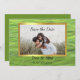 Vietnamesisk Grönt och White Photo Save the Date med lavender banner och grönt hjärta,