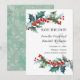 Ett härligt bröllop spara datum-kort för contemporary för vinterbröllop med sansad grenar i vattenfärgade färgnyanser av rött, grönt och akvatal. Kortets baksida har en motsvarande abstrakt mönster i vattenfärg tvättat med en snöeffekt. Anpassa texten med dina detaljer genom att redigera exempeltexten som visas i designmallen. Det här särskilda Spara datumkortet är ett bra val för bröllop under julhelgen eller under vintern.