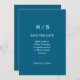 Spara datumkortet i klassiskt blått monogram för e spara datumet