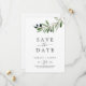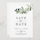Denna moderna olivoljekort som räddar datumkortet är perfekt för en boho bröllop. Den roliga men ändå elegant-konstruktionen har en ren löv av botanisk grönt och svarta oliver på ett litet gren med en klassisk mediterrana känsla.