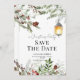 Lägg märke till er feste firande i stil med den vinter-planterska julen party spara datumkortet. Med elegant vattenfärgen gräs grenar, bär, pinekoner och en mjukt glödande lanterna anger den här designen perfektens ton för en mysigt och magisk helgdag. Anpassa med datum, plats och information. Idealisk för vintern och säsong party!