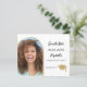 Ett foto Spara datumkortet för en studentfest. På framsidan: Lägg till ett eget lodrät storlekt foto av student. En faux guld fotoarch ram. En vit chic, svart text. Mallar för namn och datum. Namn och texten: Spara datumet är skrivna med ett modernt handskript i stil. Tassel topper med lock. Tillbaka: Information om party. 1 lakan = 1 Spara datumet som skrivs ut kant till kant.