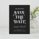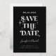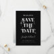 Retro sparar datumkortet med ett fult teckensnitt som säger "spara datumet" med moderna stjärnor runt mitten av århundradet. Bakgrunden färg är svart. Du kan lägga till ett foto på baksidan.