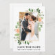 Modern Watercolor Eucalyptus Greenery Peach Ro Ram sparar datum för meddelande om Förlovning av foto - Guld Ram
