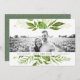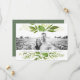 Modern botanisk grönt sparar datumkortet med en överkant och grund gräns av lush-vattenfärgsgrey i skogar och brinnande grönt, vilket ger förlovningens favoritbild. Anpassa med namn, datum och plats för bröllop med hjälp av mallen fält. Designad för att samordna med vår Vild Meadow-inbjudan och vår skrivbordssamling.