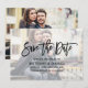 Det moderna penselskriptet sparar Förlovningen för meddelande om datum med fotoöverlägg - Fotoframsida och fotobaksida