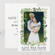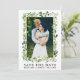 Modern Watercolor Eucalyptus Greenery Ram sparar datummeddelande för Förlovning av foto-meddelande - Guld Ram