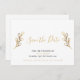 Inbjudan alla dina gäster i stil med det här fantastiska "Spara datumet"-kortet med guld-effekt, söt grenar och elegant. Kortet innehåller elegant och ett stort skript som säger "Spara datumet". Du kan ändra namn och annan information, t.ex. placering och data, och lägga till egna uppgifter om bröllop eller personliga meddelanden på kortets baksida. Observera att effekten guld skrivs ut.