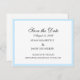 Spara datumkortet i en klassisk men modern layout på den grundläggande pappra i färg, vit med ljusblå gräns och svart text. Anpassa det här kortet och ändra exempeltexten till din egen med den här mallen.