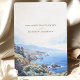 Meddela ditt kommande bröllop med det här exekutiva Spara datumkortet med en vattenfärgsbild av Big Sur, Kaliforniens ikonklipp och havsvyer. Elegantens typografi på framsidan visar i mjuka, jordnära toner av taupe, sage grönt och sandbeige, som perfekt kompletterar den sceniska kustbilden. Baksidan belyser en fantastisk vision av det tåliga kusten och rullande backe, som fångar Big Sur skönhet och stolthet. Perfekt för ett kust- eller destinationsbröllop. Det här kortet kombinerar på ett vackert sätt sofistikerad kalligrafi med pulserande, lugnande nyanser av himlar blå, grönt av sjöcellen och varm sandsten.