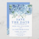 Spara datumkortets blå Hydrangeas Blommigt Bröllop Inbjudningar