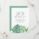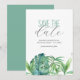 Den här födelsedagen sparar datumkorten med en grund-gräns för lush vattencolor tropical handflatan löv. Orden "Spara datum" är typset i grått från kol över en skarp vit bakgrund. Använda mallens fält för att lägga till anpassningsbar. Kortet återgår till en matchande turkos blå färg. Kan användas för en söt 16, 40:e, 50:e, 60:e födelsedag... eller vilken ålder som helst. Om du vill se hela födelsedagstemat går du till www.zazzle.com/dotellabelle Unik vattenfärgsfärgskonst och design av Victoria Grigaliunas.