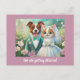 Det var en katt och en hund som ett par i bröllop i en vacker blomskugga med ord Vi är gifta sig. Du kan enkelt anpassa vykortet med din egen text och även om du vill med din egen bild och kan ändra bakgrunden färg genom att redigera produkten.