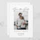 Det här platta bröllop spara datum-fotokortet i chicen innehåller ditt foto på framsidan. "Spara datumet" finns i ett livligt modernt, avslappnat skript. Det går inte att ändra skriptet inslag i designen. På framsidan har vi placerat den ovanför fotot med grund i S och D-överlappningen med fotot bara en aning. Se hur det här ser ut med ditt favoritfoto! På framsidan är ditt första namn i en elegant guld-ton som heter Kalifornien Guld. Den andra texten färg på båda sidor är svart. För datumformatet på båda sidor har vi använt snedstreck. Du kan gärna ändra detta om du vill ha ett nytt datum, kanske decimaltecken i stället, eller om du vill skriva ut månadens namn, etc. Experimentera och se hur det ser ut om du är nyfiken! Som standard har vi på båda sidor valt en transparent bas som gör färg på pappra till basen, för ett enkelt, rent utseende. Men om du föredrar ett annat färg för den ena eller båda sidorna kan du enkelt plocka ett med det redigerande verktygen. Du kan också ändra färg, teckensnittet stil och storleka på texten som du anpassar. Du kan också ändra eller ta bort text fält-du kanske t.ex. inte behöver inkludera webbplatsinformation osv. Gör det här kortet unikt för dig med den intuitiva designen verktyg och din inspiration! Och kolla vår butik efter annan enkel chic sparat datumet, inklusive den här designen i vykort- och magnet-versioner!