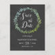 Den här chic bröllop spara datum-vykortsmallen har en ren elegant och contemporary. Den har ett livligt skript som omges av en krans av olivträd på en bas med lövens utseende. Du kan ändra teckensnittet, storleka och färg i mycket av texten om du vill, och du kan också ändra eller ta bort text till kostym efter dina behov. På baksidan kan du också ändra och ta bort inslag, inklusive ta bort grönten från texten "spara datumet" om du vill. Använda designen verktyg för att anpassa den och göra den unik för dig!