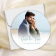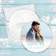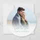 Den här designen innehåller ett datumbildkort, perfekt för målbröllop, med en enkel, elegant, klassi, unik, sanddollarformad perfekt för vilket badbröllop som helst, med en elegant fotomall