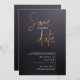 Ett modernt, dramatiskt Spara datum meddelande med en svart strålande bakgrund och guld. Kan användas som ett nytt datummeddelande eller omschemalagt datummeddelande. (vektorn Bröllop skapat med freepik - www.freepik.com). Kortet är enkelt att anpassa med alternativ för ordalydelse, teckensnitt, färg och papper form. Inte exakt vad du är tittar för? Alla våra produkter kan vara designad anpassningsbar för att uppfylla dina behov utan kostnad för extra. Kontakta oss bara på askcottonlamb@gmail.com. Samordna tillgängliga produkter: Fråga oss bara!"