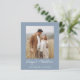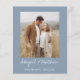 Budgetera Anpassa den här Dusty Blue and White One Photo Simple och Elegant Dubbla Sided Spara datuminbjudan med ditt meddelande och information. Den här inbjudan till chic innehåller handskriven manustypografi för snyggt och elegant för att det speciella Bröllop ska kunna vara firande.