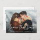 Spara datummodern skripttypografi Bröllop-vykort - använd snyggt san serif och script typsnitt på framsidan och baksidan för ett unikt utseende. Den här mallen har en skugga lagrar under den vita texten för att den ska kunna öppnas. Du kan ta bort den under anpassningsfunktionen om du föredrar designen utan den. 4x6-foton fungerar bäst för den här mallen, men du kan gå in på alternativen för att anpassa den och förstora, krympa eller flytta dig runt ditt eget foto för att hitta önskad placering.