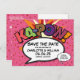 Med kärlek-hjärtekonfetti inspirerade en roligt, coola och trendig tecknad bok till att spara datumkortet som lägger graset, kranen och pow i bröllop-datummeddelandet. Den omvända informationen innehåller ytterligare händelseinformation. Designad av Thisisnotme©