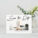 Spara meddelandet från Bröllop. Modern enkelhet med penseldragstift för handskriftsskript över centrerat foto. Blöt och baksida (tillval). Fullständigt mångsidig utmärkelse för självbetjänt stil. Justera enkelt storleka, stil och placeringen av all text i inslag. Vita dimfilter används för visning, men du kan ta bort eller ändra detta genom att klicka på det avancerade anpassningsläget.