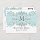 Swirl Monogram Bröllop spara datum vykort. Anpassa med din personliga information. Skicka ut som vykort genom att lägga till gästernas adress på baksidan. Du måste beställa en i taget med varje adress. ELLER lämna den tomma ordningen för det nummer du behöver och lämna skrivans gång som du tar emot dem. En del av Blue Swirls-inbjudan. Blåsaligbjudanden är en blandning av eleganter mellan viktorianska blomningar och modern monogram och namn bröllop logotyp, och är perfekt att sätta upp ett gammalt romantiskt tema med blått och taupe som din färg-kombination. Anpassa till namn och bröllop färg med hjälp av Zazzles enkla menykommandon för använda efter att ha valt "Anpassa den". Utformning av Elke Clarke ©2010 Graphics Licensed.