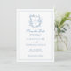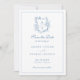 Blått kort för elegant med bröllop spara datum i monogram vapensköld.