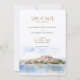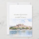 Meddela din speciella dag med den här eleganten, målbröllopet "Spara datumkortet", med en fantastisk konstnärlig representation av Palma de Mallorca, Spanien. Kortet blandar försiktigt mjuk pastellfärgad färg, inklusive himlar blå, sandig beige, oliv grönt och milda lavender. Trädfärgsgrafiken fångar den historiska katedralen och den pikturesska havsviken, vilket framkallar en känsla av romantik och äventyr. Perfekt för par att planera ett destinationsbröllop, det här kortet anger tonen för ett oförglömligt firande. Anpassa med dina uppgifter om bröllop och ge dina gäster ett bestående intryck.