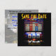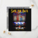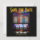 Detta Las Vegas bröllop spara datum-meddelande är en roligt, kvadratisk utformning som kombinerar både ett flyg- och remsfoto och en kasinokanal maskin för par som har tur i kärlek. Om du behöver hjälp med någon anpassning, kan du skicka mig ett meddelande genom mitt Zazzle-galleri.