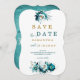 Redigerbar Spara datumskalan och Guld Inbjudan, Elegant Guld och vattenmodell, utskrivbar turkos Guld blomma, minimalistisk datumsparande, Unik Teal och Guld Ideas, Digital Aqua sparar datum för personalisering och skickar vacker kalk och Guld Spara datumkorten.