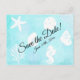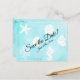Spara vykortet för Oceanen Shore Beach Thned Bröllop med tårblått och vitt sjöfolk, segelceller, sanddollar och stjärnfisk.